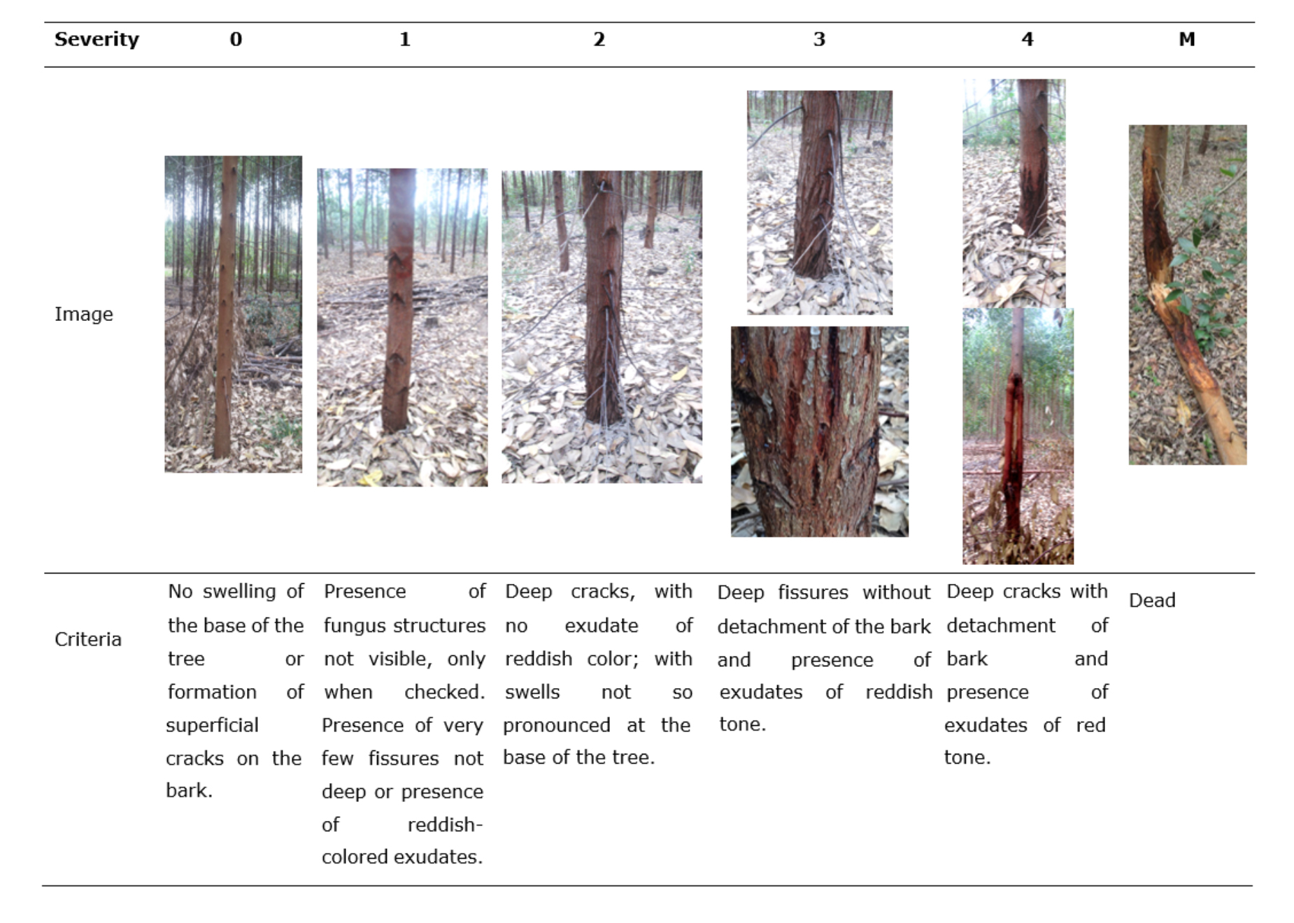 Table 2 Scale for estimating Chrysoporthe cubensis Brunes Gryzenhout & M. J. Wingf.severity in Eucayptus pellita F.Muell. plantations.