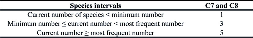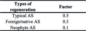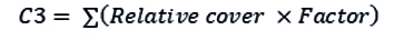 The value of the criterion is the sum of the products of the relative covers of each species in regeneration and the corresponding factor, as shown in the following formula: