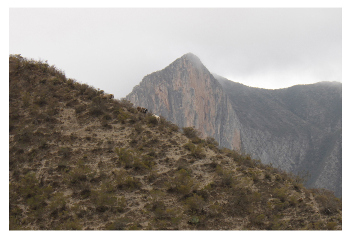 The vegetation in the Gran Sierra Plegada (Great Fold Mountains), within the Cumbres de Monterrey National Park (Spanish acronym, PNCM) has been severely affected in the last decades. Between the years 1975 and 1995, the surface area of the forests decreased by 13.68 % (6 858 ha), and that of submontane shrubs, by 29 % (7 457 ha). Conversely, the secondary vegetation increased by 37.86 % (7 063 ha), and the naked soils by 758 % (5 458 ha) (Murillo-Sánchez, 2002). An area of 4 237 ha in the PNCM is estimated to have erosion and loss of soil issues; furthermore, 56 549 ha are particularly susceptible to erosion (Pronatura Noreste A.C., 2011). The main disturbance factors are overgrazing, forest fires and pests; the uncontrolled exploitation of forest resources and the change of land use (Cantú-Ayala et al., 2013).