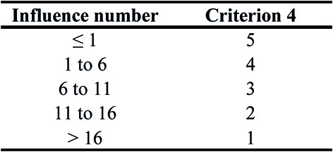 The product of the factors is the Influence Number, which corresponds with a specific criterion value (Table 9).