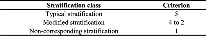 Criterion 6 (stratification). The observed structure was compared with the potential structure cited in the literature for the same type of vegetation, assigning it a class based on the stratification types shown in Table 11.