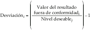 5. Cálculo del porcentaje de resultados que no cumplieron con los niveles objetivo prefijados (factor F2):