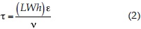 donde L es el largo; W, el ancho; h, la profundidad del humedal; ε, la porosidad del lecho, y ν es el caudal volumétrico del efluente.
