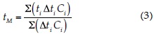 donde ti y Ci son los tiempos y concentraciones de sal obtenidos en el transcurso del ensayo: