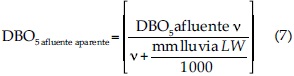 DBO5 afluente aparente: DBO5 que tendría el afluente si se diluyera con el agua aportada por la lluvia diariamente.