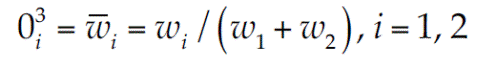 Capa 3. Promedio de los nodos. Se calcula la relación de fuerza de disparo de la i-ésima regla con respecto a la suma de las fuerzas de disparo de todas las reglas y las salidas de esta capa son llamadas fuerzas de disparo normalizadas