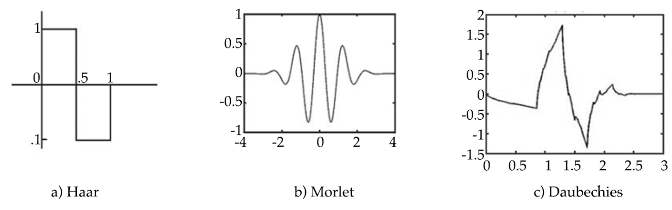 La transformada wavelet (TW) fue introducida por Grossmann y Morlet (1984) como una herramienta de análisis tiempo-escala para señales no estacionarias, así como para estudiar las no linealidades y discontinuidades de datos irregulares. También puede usarse para analizar series de tiempo que contienen no estacionalidades en muchas frecuencias diferentes (Daubechies, 1990). La TW consiste en descomponer una serie de tiempo en el espacio tiempo-frecuencia y determinar sus modos dominantes de variabilidad, y cómo éstos se modifican en el tiempo (Torrence & Compo, 1998). En este proceso de transformación se mantiene la ubicación de la señal en el tiempo y es posible reconstruirla (Graps, 1995; Percival & Walden, 2006). La TW compara una señal con versiones dilatadas y trasladadas de ciertas funciones wavelet llamadas wavelet base o madre (Graps 1995; Remesan et al., 2009) que deben satisfacer ciertos requisitos matemáticos (Graps, 1995). Existe una variedad de estas funciones, entre ellas Haar, Morlet, Daubechies, Symlets, Meyer y Coiflets (ver figura 1).