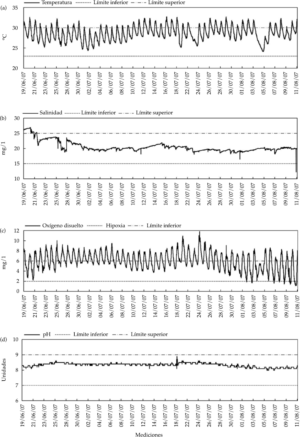 Dentro del ecosistema del camarón existen parámetros de mayor impacto, los cuales deben monitorearse con mayor frecuencia, pues desestabilizan el ecosistema más fácilmente que otros, siendo este conjunto el de mayor importancia en la evaluación de la calidad del agua (Semarnap, 1996). El cuadro 1 muestra la clasificación de parámetros involucrados en la calidad del agua debido a su frecuencia de monitoreo. En este trabajo, el grupo de monitoreo diario se seleccionó por su importancia principal en el ecosistema de cultivo.
