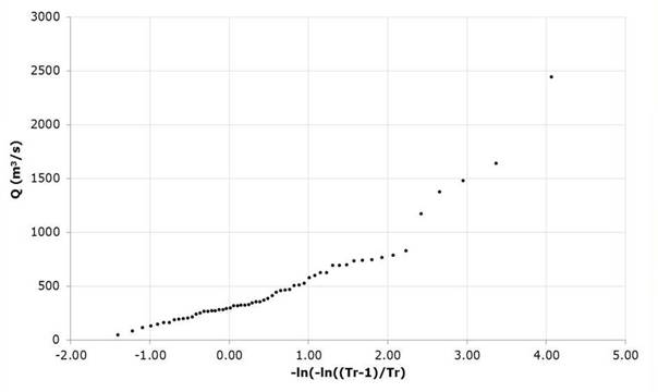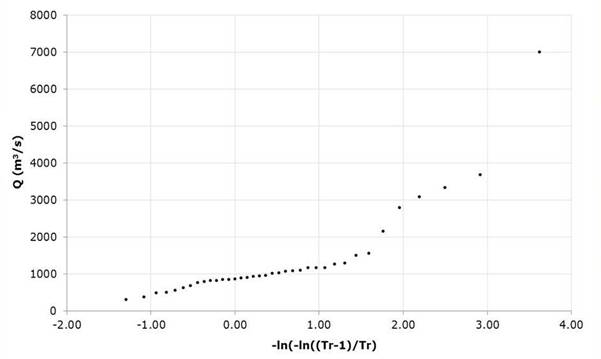Table 3 Annual maximum flows data of the Santa Cruz hydrometric station, Sinaloa, Mexico.