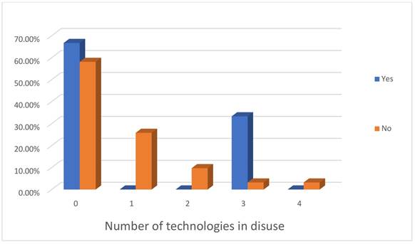 Figure 11 Number for technologies in use/disuse and evaluation of the training