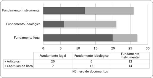 Identificamos tres aspectos fundamentales para la participación pública en la gestión del agua como una oportunidad para adoptar un enfoque integrado: 1) legal, cuando se cumplen el marco legal y los acuerdos reglamentarios actuales; 2) ideológico, cuando apela a la participación democrática y la gobernabilidad, y 3) instrumental, cuando es un medio para la educación y el aprendizaje, facilitando información útil y aumentando la calidad del proceso de toma de decisiones y sus productos. La mayoría de las publicaciones analizadas desarrolla el fundamento legal, seguido por el instrumental y luego el ideológico. Algunas publicaciones abordan aspectos que se relacionan con más de un fundamento (Figura 1).