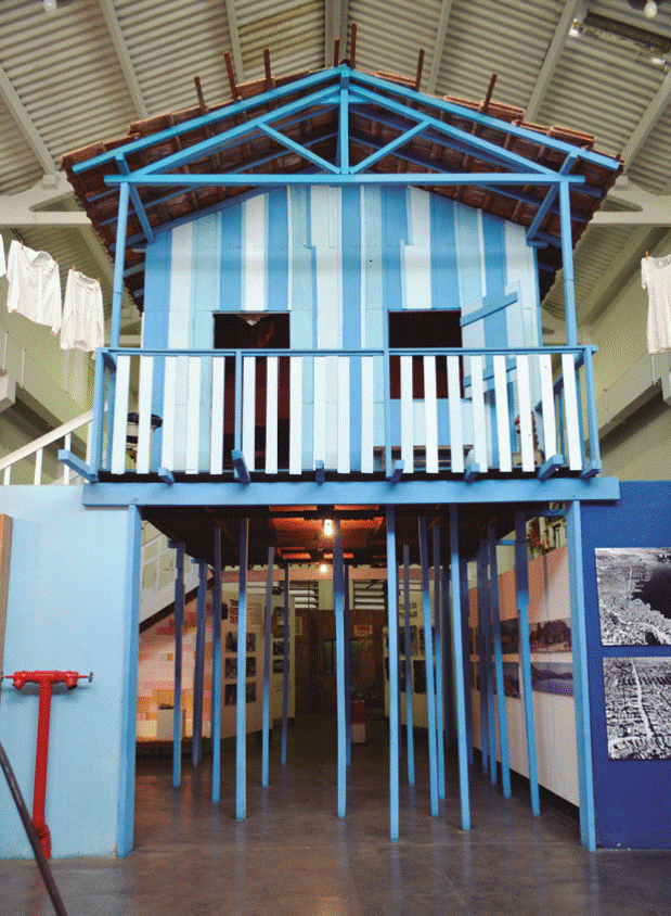The curatorial script and the exhibition design were devised jointly by the inhabitants of the favela and by experts from different areas, building a model that has a stilt house in the middle of its construction and addressing topics such as migration, the relationship of the inhabitants with water, everyday things that over time can be musealized, the very particular syncretic beliefs of Brazil, the violence resulting from drug trafficking, and the hope of the inhabitants for the possibility of improving their living conditions.