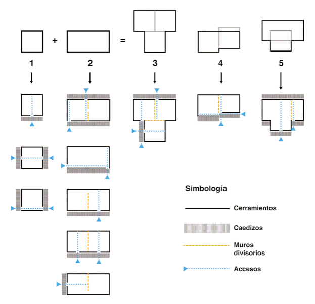 Figura 9 Diagramas de organización por unidad arquitectónica en viviendas de pajarete