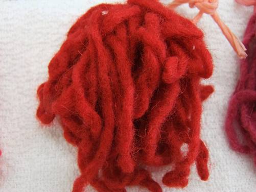 Figure 10 Wool processed with alum mordant and dyed in a laboratory with cochineal in an acidic medium.