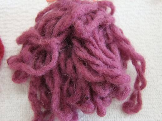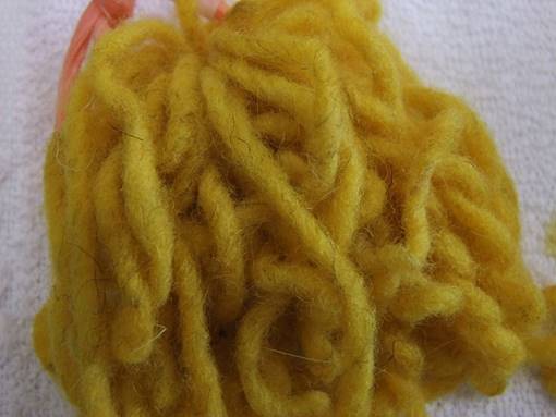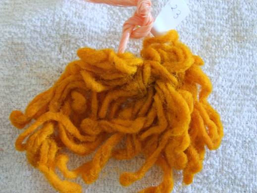 Figure 13 Wool not treated with mordants and dyed in a laboratory with dahlia petals and heads.