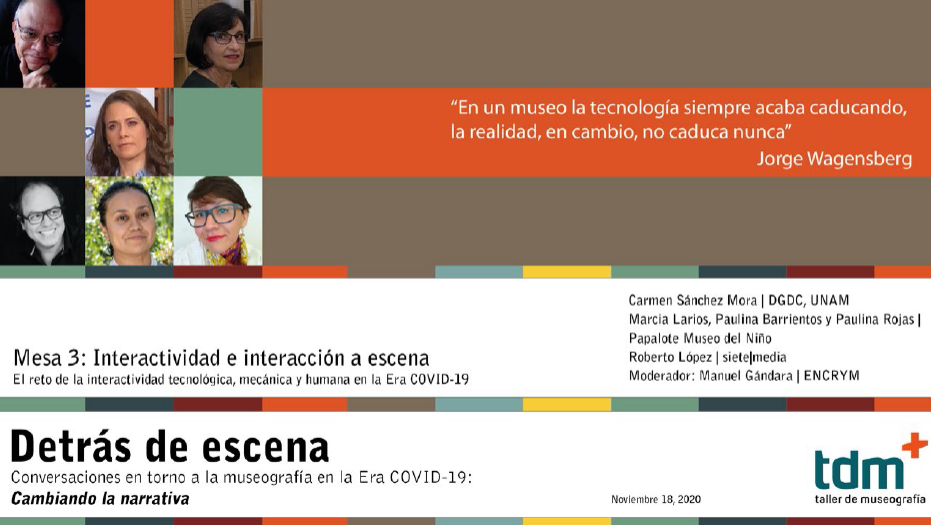 From November 16th to 19th, 2020, Taller de Museografía (TDM), an independent museum consultancy, held a series of virtual roundtables on exhibition design in the COVID-19 era. Two fundamental axes served as a frame of reference to better understand the context.