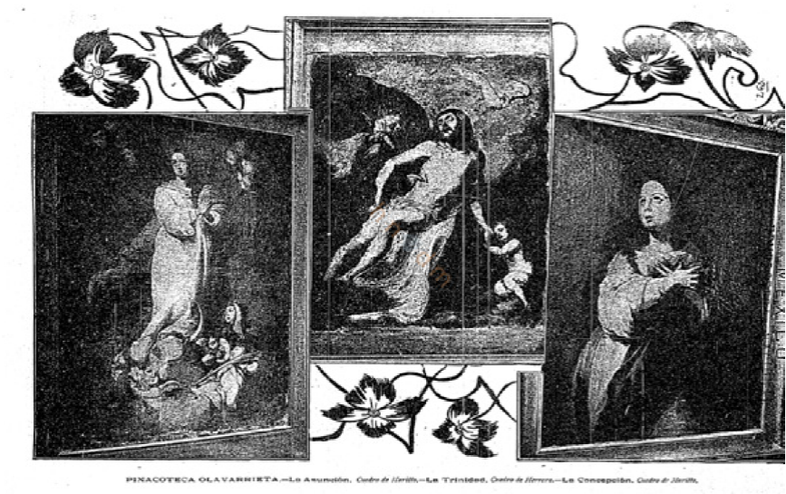 Photographs of the pieces donated by Ruiz Olavarrieta were reproduced in the press: there is a mention of a Titian piece; paintings from the French school, such as a Delacroix Pietà (Figure 2); from the Spanish School: two sketches by Murillo, La Concepción (The Conception) and La Asunción de María (Assumption of Mary), and a painting by Herrera, among others (Figure 3).