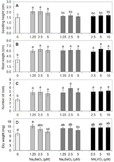 Keywords: selenite; selenate; ammonium vanadate; beneficial elements