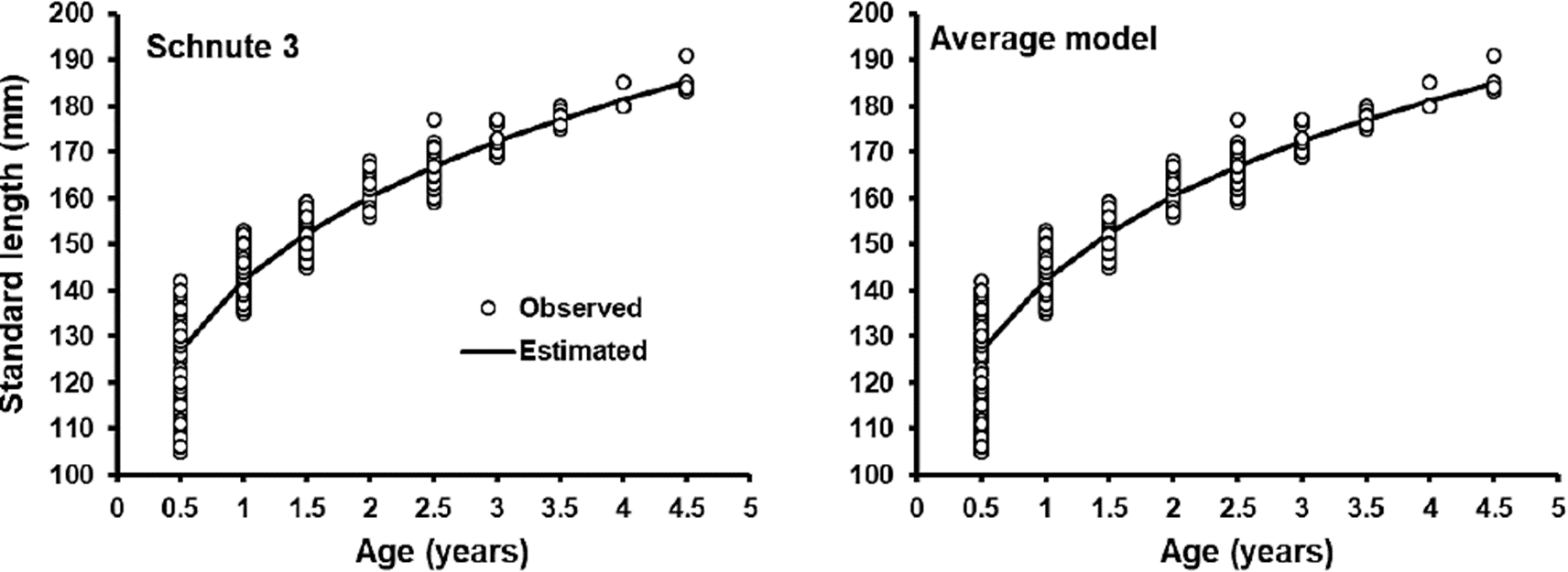 Schnute, J. (1981). A versatile growth model with statistically stable parameters. Canadian Journal Fisheries and Aquatic Science, 38: 1128-1140. https://doi.org/10.1139/f81-153 [ Links ]