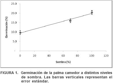El nivel de sombra mostró relación directa con la capacidad germinativa, lo cual corresponde con la característica de tolerancia a la sombra de Chamaedorea elegans.