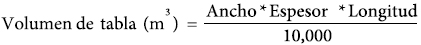 Rendimiento por ancho, longitud y espesor de tablas