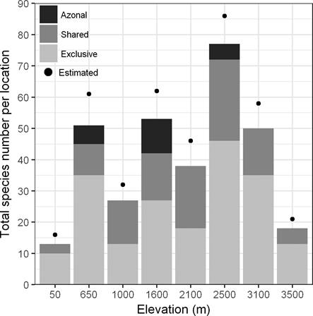 Sampling and botanical records. Field sampling was conducted between February 2012 and January 2014 at eight sites within elevational belts of about 500 m each (Figure 1, Table 1). In order to simplify hereafter we will refer to every site as categorical unit (50, 650, 1,000, 1,500, 2,100, 2,500, 3,100, 3,500 m).