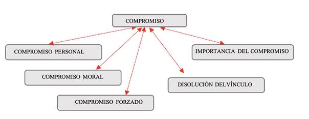 En consideración al eje temático compromiso, en la categoría de la decisión de permanecer en la relación de pareja, destacaron el compromiso personal, el moral y el forzado; hallazgos que coinciden con lo reportado por Torres González y Ojeda García (2009), quienes encontraron estos mismos estilos en población mexicana. En cuanto a la importancia de este factor para la permanencia de la relación, las entrevistadas expresaron sentimientos de incomodidad si se disolviera el vínculo y mencionaron la transcendencia del compromiso como fundamental (ver Figura 4).