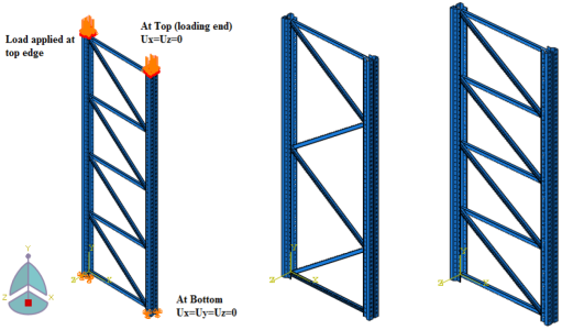 El modelo de elementos finitos usado para el modelaje de plano 2D simple y ampliado para cuadros 3D con conexiones semi-rígidas, para los cuales los resultados del análisis de pandeo son obtenidos. Investigadores. (Thombare C. N. et.al., 2016) estudiaron el análisis no-lineal de pandeo de la estructura 2D de estantes de almacenamiento de acero formado en frio usando plataformas comerciales FE apropiadas. En este artículo, los resultados del FEA son validados con datos experimentales disponibles para un molde CFS bidimensional particular (Bajoria, K.M., 2011) con diferentes espesores y patrones de refuerzo.