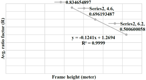A partir de las Tablas 2, 3 y 4, se observa que la proporción de DSM con orificio para FEM muestra menor variación para la misma altura del cuadro. El promedio de esas proporciones, por ejemplo, R fué trazada en relación a la altura del cuadro correspondiente (digamos R) (Consulte la Figura 5). A partir del gráfico antes presentado en Figura 5, obtenemos la siguiente ecuación para cuadro con refuerzo tipo B1,