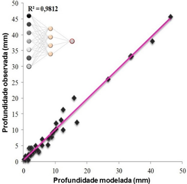 Os resultados encontrados demonstram a potencialidade das RNAs frente à modelagem da profundidade de carbonatação do concreto, as quais se apresentam como ferramentas potenciais para a modelagem da degradação de estruturas de concreto, corroborando com os estudos da área de patologia das construções.