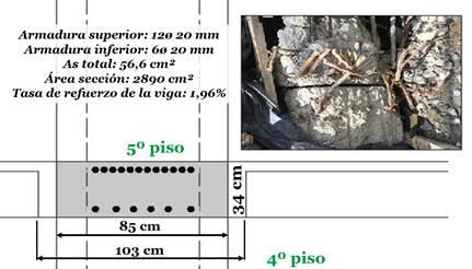 Todavía en la sección de coulmna recogido, se encontró la intersección pilar-losa, y su armadura evidente. Por lo tanto, fue posible determinar la disposición del refuerzo en la viga que soportaba la losa (Figura 12).