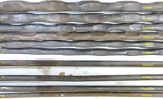 Todas las muestras se analizaron para determinar la resistencia a la tracción (fst que varía de 470MPa a 760MPa; fyk que varía de 320MPa a 640MPa; elongación que varía del 3% al 35% y todas mostraron ruptura dúctil). En comparación con la estandarización actual de ABNT NBR 7480, se puede inferir que este refuerzo se puede considerar como acero de grado CA 60.