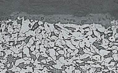 Los análisis metalográficos realizados a diferentes aumentos mostraron que las muestras de barras con muescas longitudinales de calibre 22, 20 y 16 mm corresponden al acero CA 60 y las barras transversales planas de calibre 10 mm y las barras complementarias planas de calibre 8 mm corresponden al acero AC 37. Un ejemplo de análisis metalográfico se puede ver en la Figura 15.