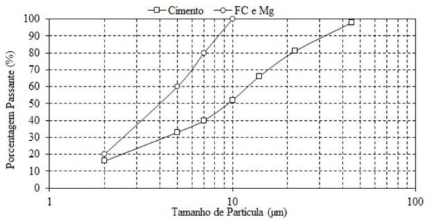 O objetivo deste artigo é dissociar os efeitos físicos e químicos do FC em sistemas de pasta e argamassa. Isso foi alcançado usando FC e um material filler inerte (brucita, Mg(OH)2, que será referido como Mg) com distribuição granulométrica e finura semelhantes. O conceito de uso de um material inerte para avaliar o efeito de um material reativo não é novo. No entanto, nenhum trabalho de pesquisa foi realizado para utilizar esse conceito para dissociar os efeitos físicos e químicos do FC e quantificar a contribuição de cada efeito separadamente.