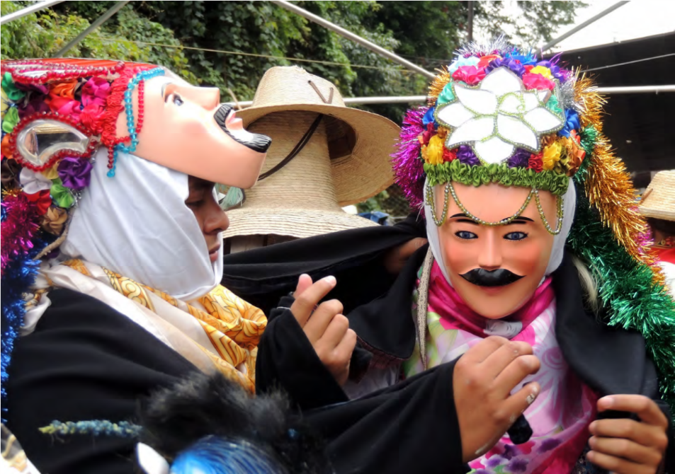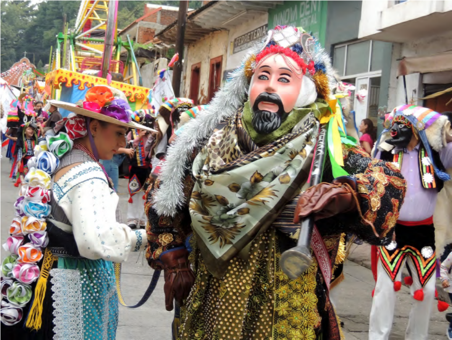 Pero luego sale otra danza del mismo lugar, que son dos danzas, y ahí compiten cada año, esas dos danzas. Sí, pero no hay más danzas, más que ésta, que es la única danza, primera, desde allá, donde reventó el volcán”.