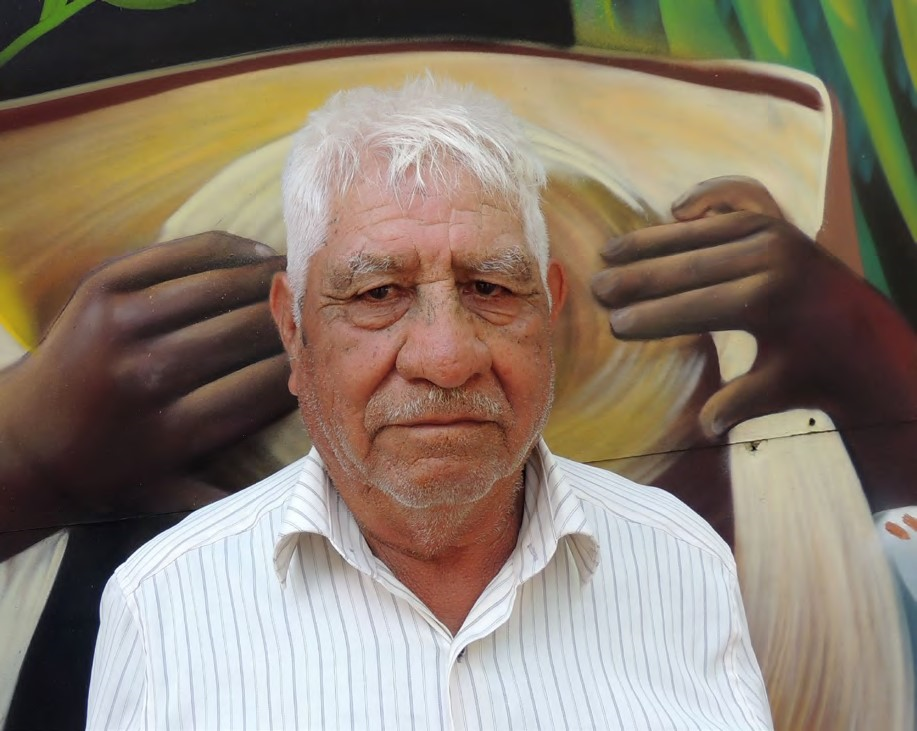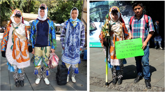 Mire, lo que significa. Ese que trae atrás ese es el capotillo, se nombra un capotillo, sí el de atrás. El de adelante es un delantar, como lo está viendo, ¿sí? El señor Don José trae un guaje atrás, es donde cargaba el agua. Es donde cargaba el agua, y ahora ya se lo ponen ellos. Eso significa eso para terminar con toda la danza. Hay Kurpites, un grupo de… vamos a hablar de cinco Kurpites, donde el viejo allá y la María acá, como él es uno de los Kurpites que inicia también la danza, ¿verdad?. Entonces esta danza está reconocida por todo el mundo, ya mi nieto ya ha ido a bailar lejos, a Estados Unidos, ya lo han llevado a bailar allá, pero lejos.