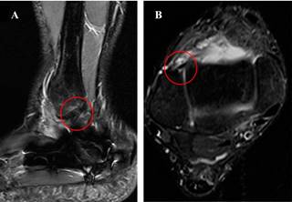 Se evaluó mediante el uso de un goniómetro y un dinamómetro la movilidad y la fuerza del miembro afectado y se la comparó con el lado sano a los 24 meses postoperatorios. El paciente recuperó su rango de movilidad y fuerza. Presentó dolor de 0/10 según la escala visual análoga (EVA). El puntaje según la American Orthopedics Foot and Ankle Society (AOFAS) fue de 92. La resonancia magnética nuclear (RMN) control mostró integridad y continuidad del espesor de ambos ligamentos (Figura 5).