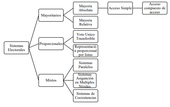 No obstante, González Tule (2017) tomando como referencia las fórmulas de Nohlen con relación a la decisión y representación, realiza una clasificación de los sistemas electorales, los cuales están basados esencialmente en atención al principio de representación planteado por Nohlen. En la figura 1, se establece la clasificación de los sistemas electorales tomando en consideración lo establecido por González Tule (2017) y agregando algunas definiciones planteadas por López Flores (2015).