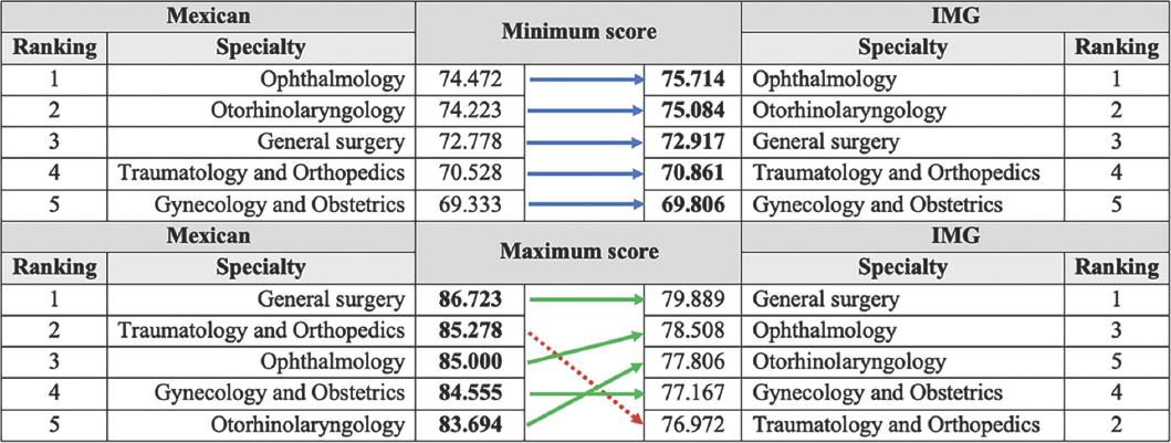 Ranking of specialties between Mexicans and IMG