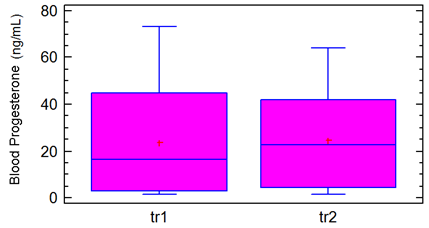 Blood progesterone levels in the two treatment groups