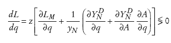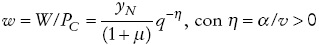 Con estas simplificaciones, q y ρ -a través de W/E y τ , respectivamente- serán los únicos precios relativos que influirán sobre el comportamiento del gasto y la producción doméstica. Los cambios de ρ* sólo afectarán el saldo del balance pagos a corto plazo. La relación (10) es central en nuestro análisis y transparenta una característica habitual en economías pequeñas y abiertas como la argentina: una depreciación real implica en el corto plazo una caída del salario real.