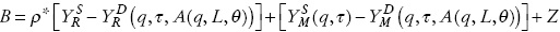 El comportamiento de las ofertas sectoriales lo estilizamos de la siguiente manera: la producción de R utiliza capital, pero no requiere trabajo. Por simplicidad, se representa mediante una función de producción con un coeficiente capital-producto fijo. M se produce con una función de producción estándar, con derivadas parciales positivas respecto a sus dos insumos: capital y trabajo. La producción de N se representa con una función con coeficientes fijos para capital y trabajo, siendo el último el factor limitante.