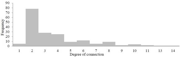 Recent studies already use Graph Theory more frequently to study migration. García Flores (2013) analyzes the patterns of internal migration in Colombia. Ramirez (2014), with a model applicable to different scales, finds that the data from a region of Chile is close to a small world network5 with 36 nodes, 977 links, an average clustering coefficient of 0.813, and an average path length of 1 225. Lomelí Carrillo and Ybáñez Zepeda (2017) show the differences between two regions on the northwest border of Mexico, while Ruiz-Santacruz (2019) affirms that when analyzing social networks, they “provide a tool to study relationships between countries, the importance of each one within the network, and the influence of country variables on migration patterns” (p. 79).
