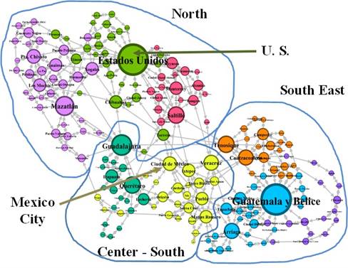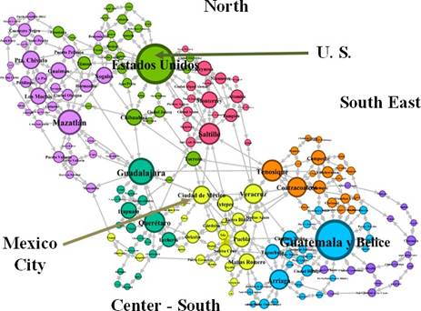 In summary, the Graph Theory is useful to know if leaving one city you can reach another, to know the similarities between the regions and to determine the types of relationships that exist between each one of them. The contribution of this theory to migratory flows is basically that it allows us to know which cities concentrate more power in terms of traffic and which are more isolated within the network.