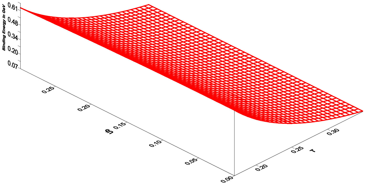 where m is quarkonium bare mass for the charmonium or bottomonium mesons. By using Eq. (42), we write Eq. (45) as in Eq. (46). One can obtain the quarkonium masses at zero temperature by taking