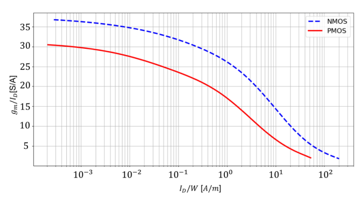 /W puede ser ampliamente usada durante la fase de diseño cuando la razón W/L es desconocida [28]. Esta técnica favorece que el diseñador, una vez determinada la región de operación, dimensione al transistor. Entonces para determinar sus dimensiones físicas, el diseñador sólo requiere conocer la densidad de corriente I