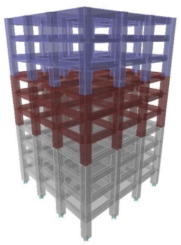 Edificios de C/R de 4, 6, 8, 10, 12 y 15 niveles fueron diseñados de acuerdo a las normas técnicas vigentes de la ciudad de México. Los edificios presentan una estructuración tridimensional formada por marcos rígidos ortogonales con tres crujías en cada dirección. Los marcos están conectados por losas macizas en cada nivel, que se idealizan como diafragma rígido en cada piso. Todos los edificios tienen una altura de entrepiso de 4 metros y la separación entre crujías es distinta para cada tipo de edificio, como se muestra en la Tabla 2. Los edificios se definen con un uso ocupacional de oficinas y se consideran las cargas variables reglamentarias correspondientes. El factor de comportamiento sísmico considerado en los análisis es Q=2 para todos los edificios; además, para la revisión de la seguridad estructural ante el estado límite colapso, se limitó la distorsión máxima de entrepiso a d=0.015.