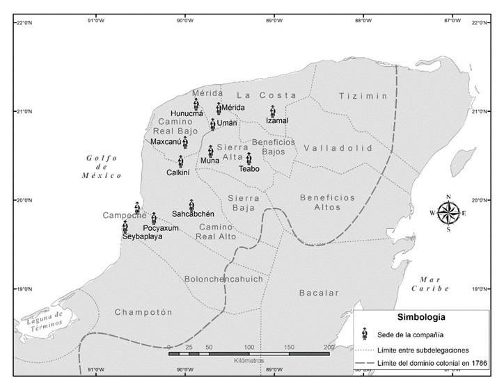Como hemos mencionado, las compañías tuvieron su cabecera en dos de los sitios más importantes de la provincia: Mérida y Campeche. Empero, esto no limitó que algunos grupos se asentaran en los pueblos aledaños, lo que implicó que muchos milicianos pardos estuvieran presentes en una buena parte de la Península (Campos, 2005, p. 90). Así, el distrito militar con cabecera en la capital peninsular comprendía originalmente agrupamientos en Mérida, Muna, Hunucmá, Izamal y Umán, mientras que, en el área de Campeche, se hallaban distribuidas en ese puerto, en Maxcanú, Calkiní, Teabo, Seybaplaya, Sahcabchén y Pocyaxum (Campos, 2005, p. 24).