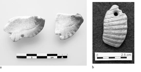 Primero porque pocos sitios han proporcionado una cantidad tan grande de piezas en proceso de trabajo y aunque no se cuente con talleres in situ existen suficientes pruebas para confirmar una actividad de manufactura local de ornamentos de concha y una intensa producción artesanal (Mas, 2018: 374-375) con recurrencia de ciertos comportamientos técnicos y representación en las colecciones de todas las etapas de elaboración (véase la Tabla 2).