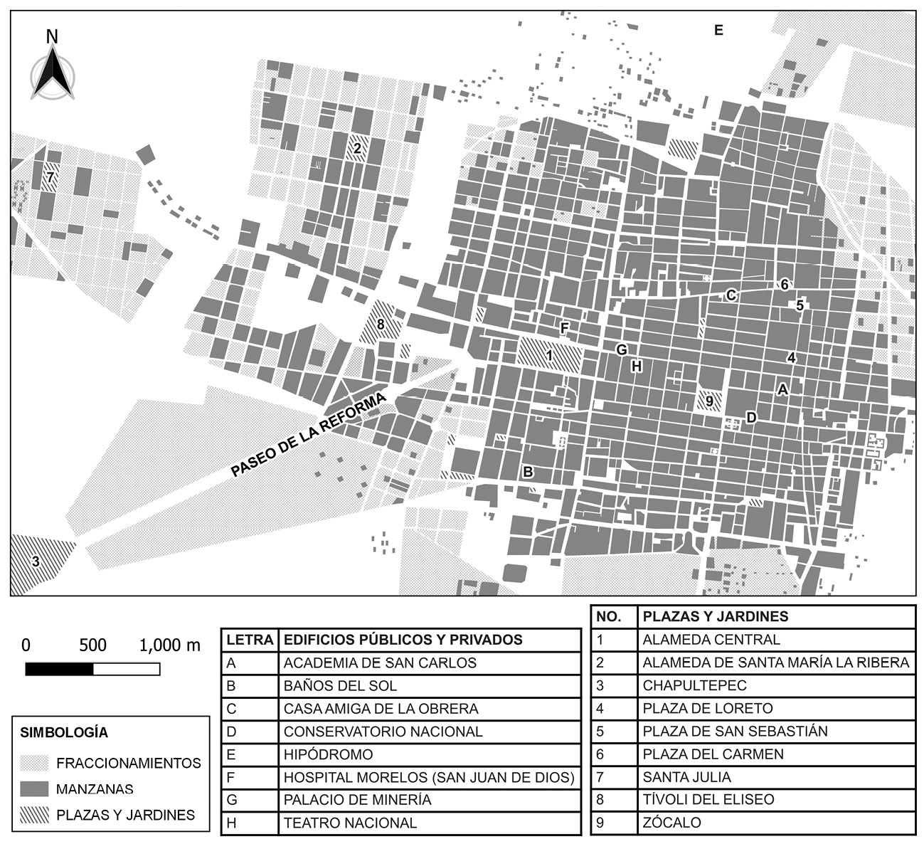Asimismo, los ideales decimonónicos de modernidad se materializaron en la división y regulación de lo público y lo privado pues, más allá del espacio, sus usos y prácticas sociales definían la vida urbana (Lefebvre, 2013, pp. 75-85). El espacio público, “entendido como espacio común y abierto, apto para favorecer el intercambio y la circulación de las personas y las cosas”, quedó sujeto a un orden que pretendía restringir o “domesticar” sus usos. El reforzamiento de las instituciones de gobierno en el porfiriato promovió una normativa tendente a limitar los usos espontáneos y tradicionales de los espacios públicos, salvaguardando jardines, parques y plazas de sujetos y prácticas indeseables.50
